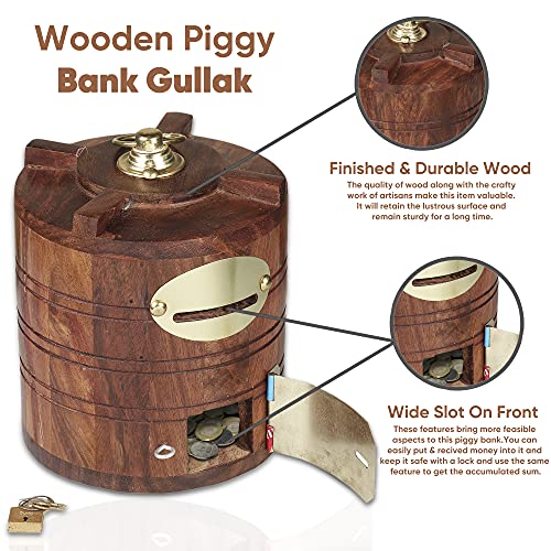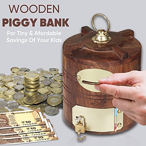Karigar Creations Handicraft Wooden Water Tank Shape Money Bank with Lock