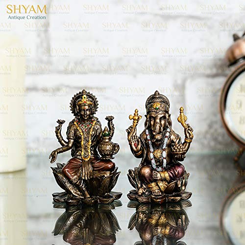 Handmade Bronze Finish Lakshmi Ganesha Idol Diwali Decoration Puja Item